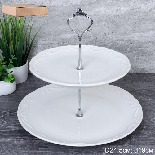 Ваза для фруктов 2-х ярусная 20/25 см Звезда / R-635 /уп 11/ Новогодняя костяной фарфор