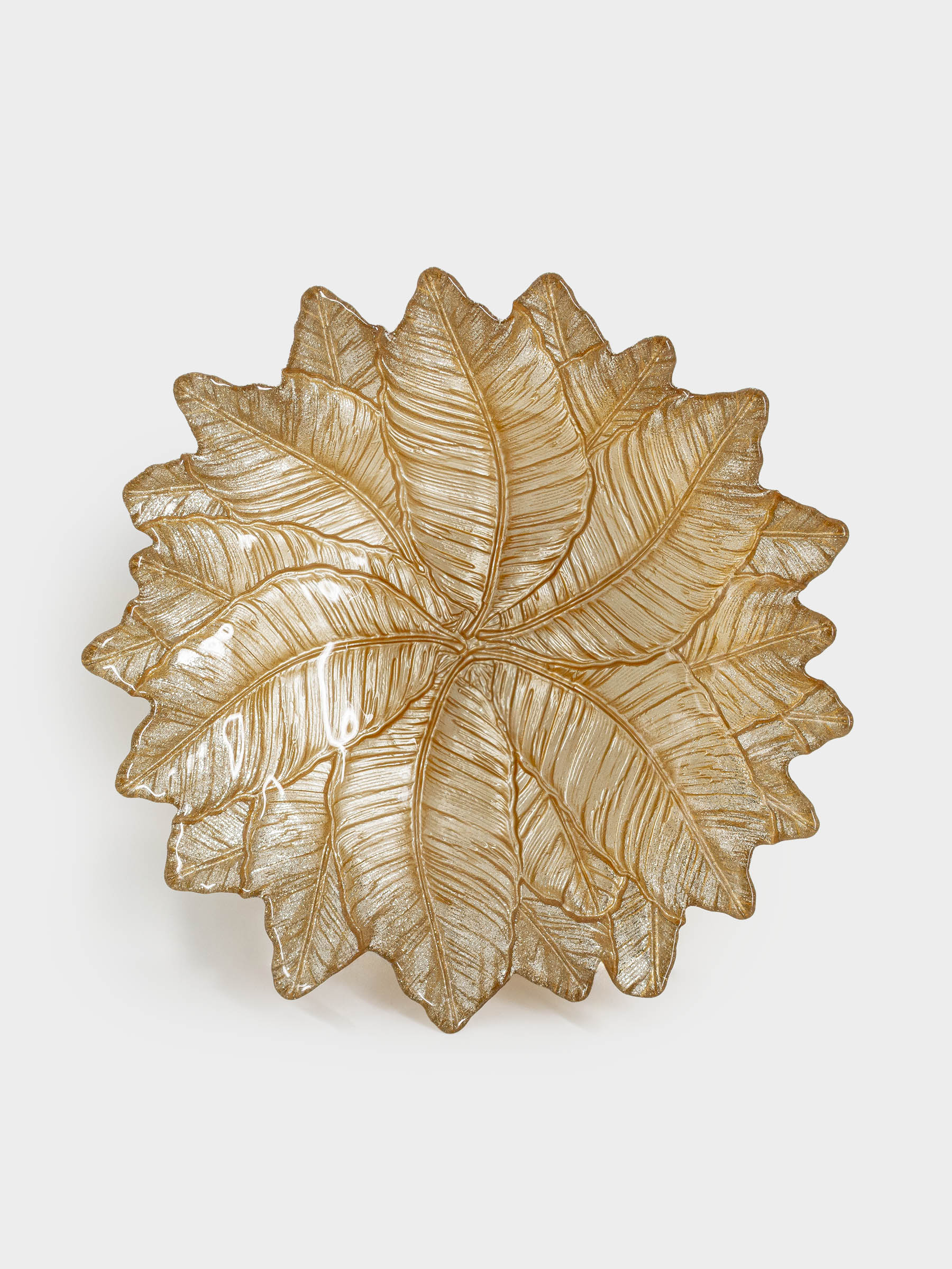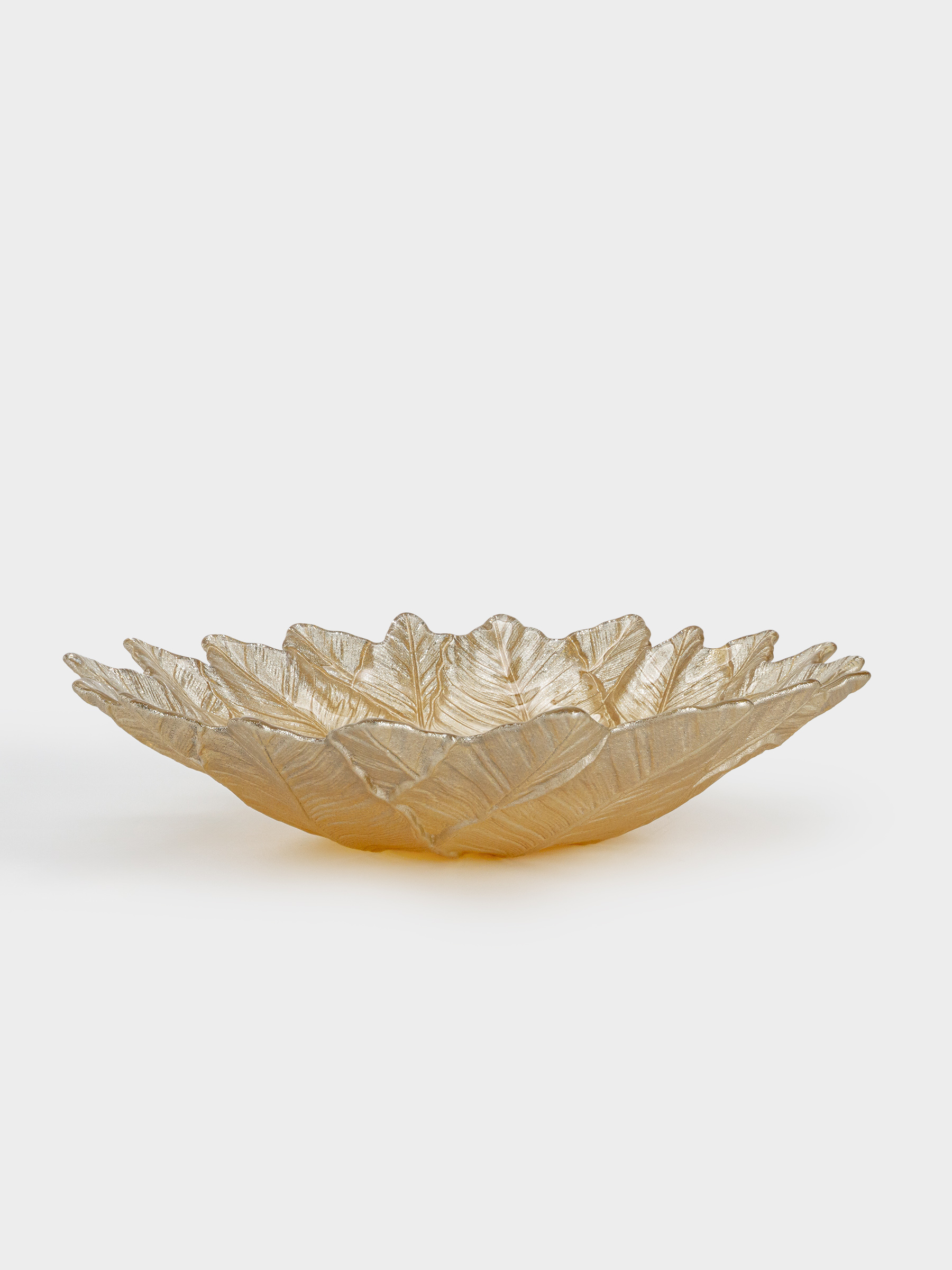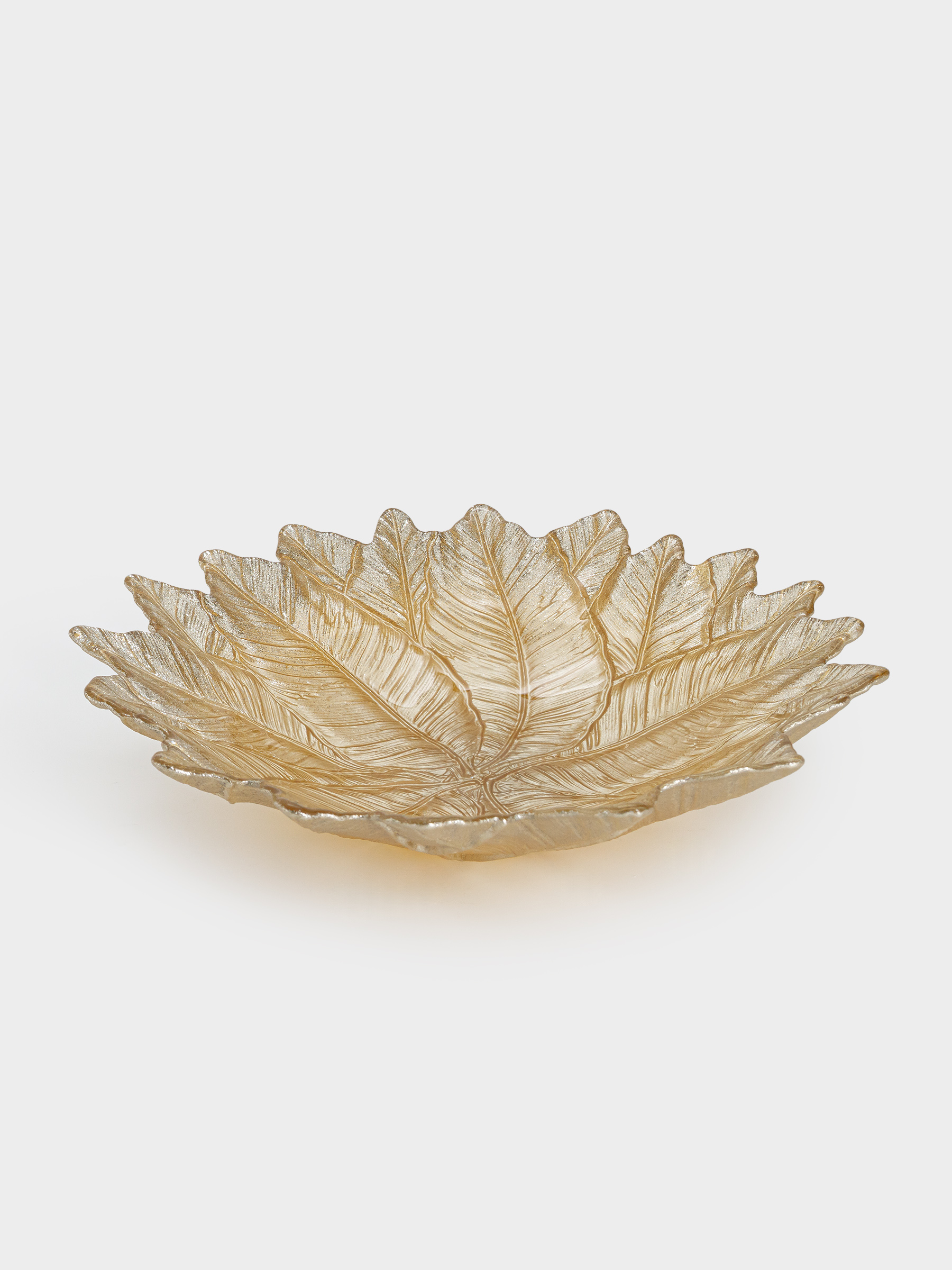 Ваза для фруктов, 31х7 см, стекло, золотистая, Листья, Autumn forest