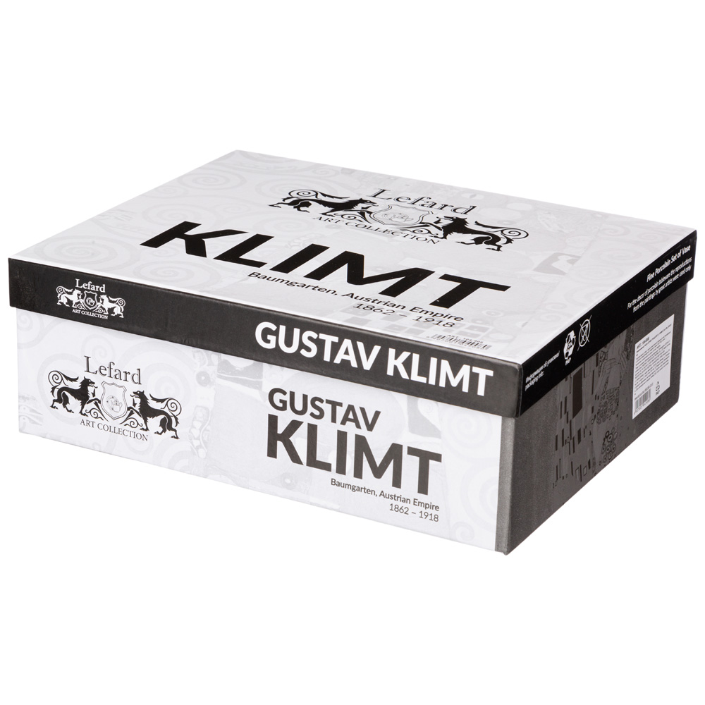 Арт Коллекция для ценителей прекрасного. Изделия из тонкостенного фарфора. Посуда прошла сертификацию. Безопасна для контакта с пищевыми продуктами. Декор по мотивам картин Густава Климта. Удобная форма. Отличный подарок. Не использовать в микроволновой печи, не рекомендуется мыть в посудомоечной машине.