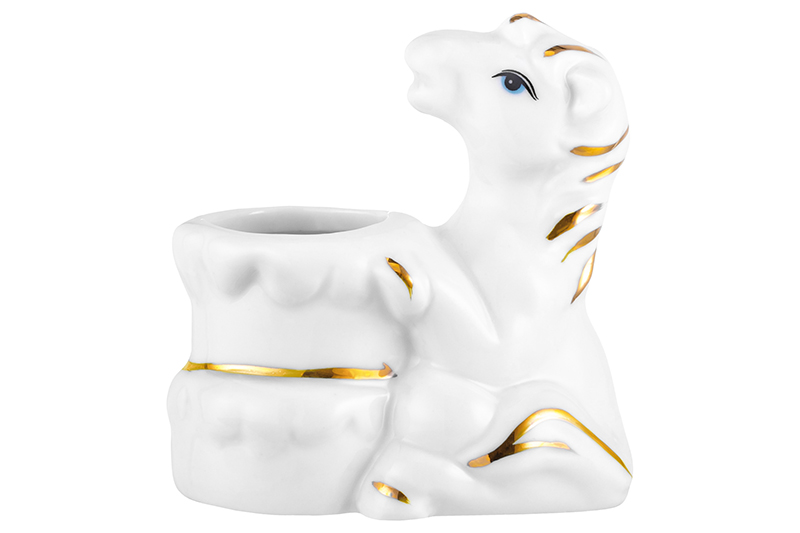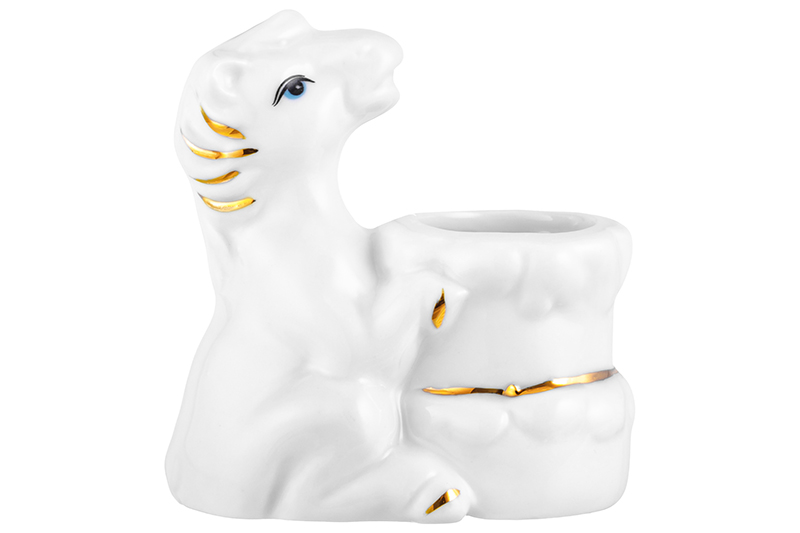 Вазочка для зубочисток 6*4*7 см "Лошадь" белая с золотом, фарфор