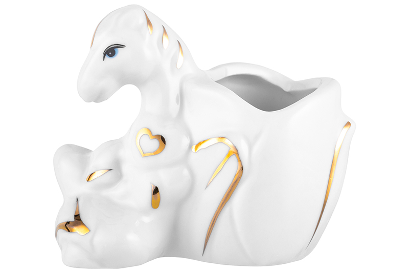 Вазочка для зубочисток 7,5*4,5*6,5 см "Лошадь" белая с золотом, фарфор