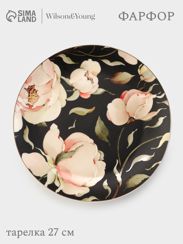 Черная фарфоровая тарелка диаметром 27 см, украшенная изящным цветочным рисунком. Идеально подходит для подачи основных блюд. Рекомендуется ручная мойка, чтобы сохранить красоту изделия. Не предназначена для использования в микроволновой печи.