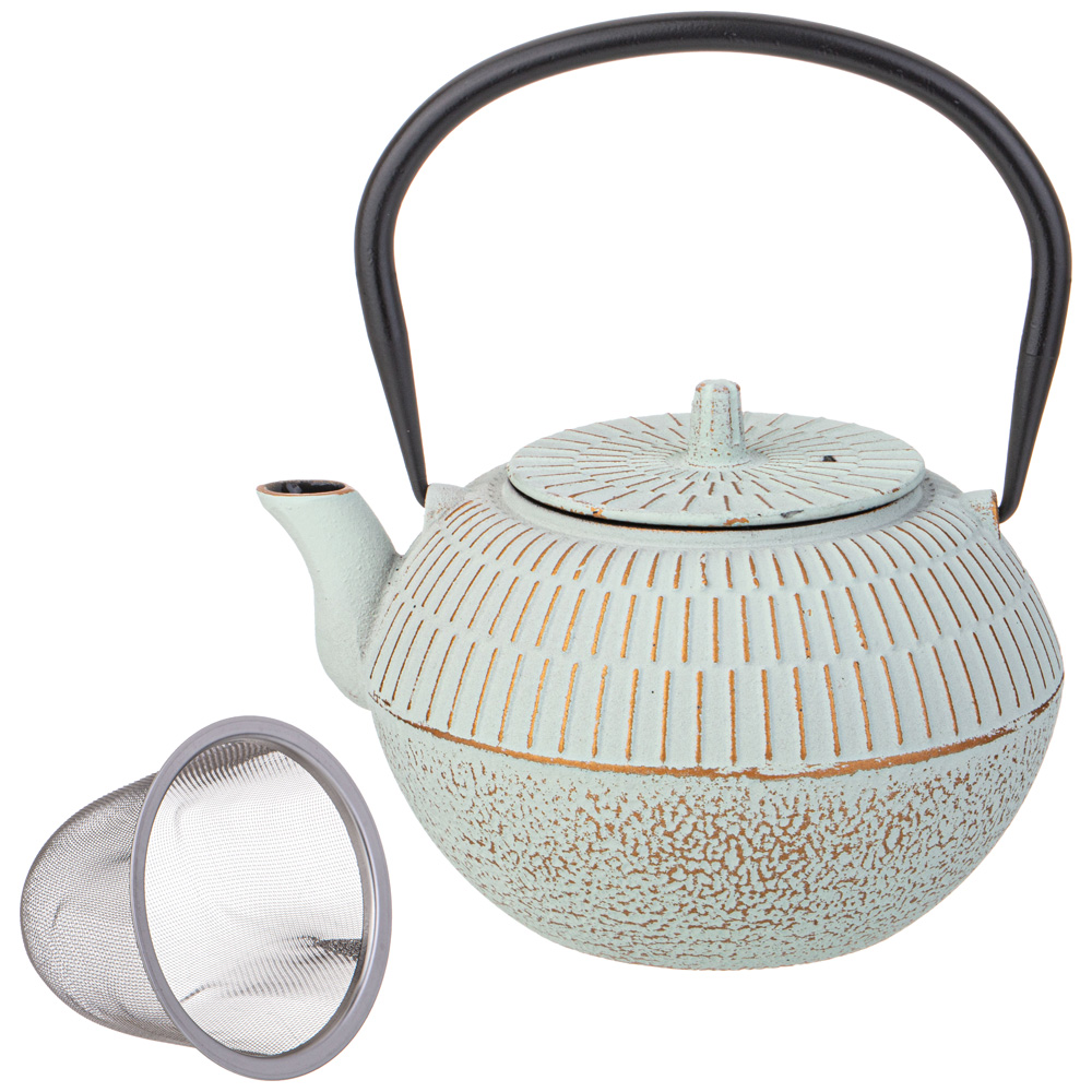 Устройте себе настоящую чайную церемонию с традиционным чугунным заварочным чайником. Внутренняя поверхность чайника покрыта эмалью, которая надежно защищает чайник от ржавчины и препятствует возникновению металлического привкуса у напитка, в связи с чем чайник идеально подойдет для заваривания Вашего любимого пуэра, улуна, черного, травяного или ароматизированного чая, раскрывая всю полноту вкуса напитка. В комплекте идет ситечко, которое надежно удерживает заварку. Не смотря на свои маленькие компактные размеры, этот чайник вмещает в себя 1200 мл, а его презентабельный внешний вид будет выигрышно смотреться на любом празднике.