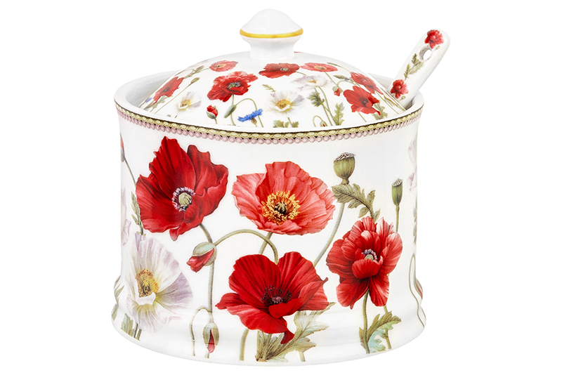 Сахарница 250 мл 9*9*10 см "Маки" + ложка, NEW BONE CHINA