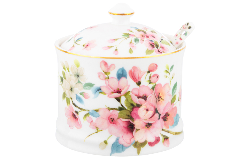 Сахарница из серии «Яблоневый цвет» от Elan Gallery предназначена для красивой сервировки вашего стола. Поставляется в комплекте с фарфоровой ложкой. Размер ёмкости – 9х9х10 см, объём – 250 мл. Выполнена из фарфора нового поколения new bone china, сочетающего в себе изящность и высокую прочность. За счёт гладкости изделия легко отмываются, поэтому сохраняют привлекательный внешний вид и практичны в использовании. Плотная структура материала позволяет посуде дольше сохранять температуру блюд и напитков. От других видов костяного фарфора new bone china отличается большей экологичностью в производстве. Белую поверхность изделия украшает рисунок цветущих яблоневых веточек, выполненный в акварельной манере. Тонкая золотистая окантовка служит деликатным акцентом и подчёркивает его изысканность. Декоративная баночка добавит шарма вашему кухонному инвентарю. Ёмкость подойдёт для хранения не только сахара, но и соли, специй и приправ. Засыпьте внутрь чай или кофе, чтобы в любой момент заварить свежий напиток. Подайте её вместе с горячими блюдами, чтобы каждый мог приправить пищу по своему вкусу. Эстетичную ёмкость также можно приспособить под варенье, мёд или икру. Маленькая ложечка позволит удобно набрать необходимое количество продуктов. Она компактно помещается в баночке благодаря выемке на крышке. Такое изделие отлично дополнит сервировку стола как для сытного завтрака, так и для уютного чаепития. Не рекомендуется применять абразивные моющие средства. Не использовать в посудомоечной машине и микроволновой печи. Поставляется в дизайнерской картонной коробке – благодаря ей вам не потребуется дополнительная подарочная упаковка. Фарфоровая сервировочная посуда будет оригинальным подарком для хозяйки, ценящей не только практичность, но и привлекательность. Серия «Яблоневый цвет» от бренда Элан Галерея станет украшением любого кухонного инвентаря и позволит собрать красивый сервиз в едином стиле! /