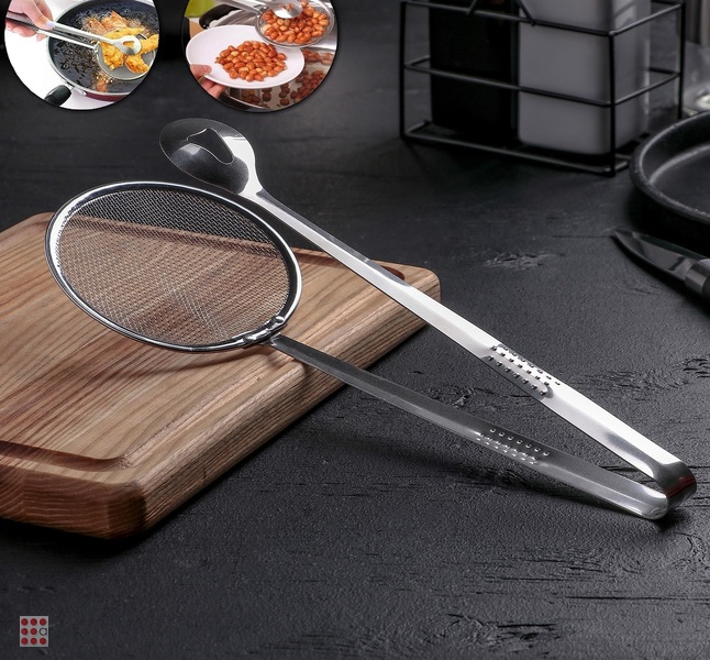 Металлическая шумовка с функцией щипцов, которой очень удобно отжать масло с приготовленного продукта. Излишнее употребление масла еще ни одной фигуре не шло на пользу, согласны? Сито легко пропускает масло, пену и тем самым, продукт на выходе получается максимально сухим и без капель жира, который разбрызгивается по всей кухне. Щипцы выдерживают высокую температуру и занимают минимум места на кухне. Предназначены для жарки картофеля фри, луковых колец, наггетсов и других блюд во фритюре. Шумовкой удобно доставать пищу из бульона, рассола и воды, а также варенные фрукты, овощи, а сито можно использовать как небольшой дуршлак, черпак. Хорошая длина шумовки, позволит использовать ее даже в глубоких кастрюлях. Шумовка-щипцы выполнена из стойкого к коррозии металла и рассчитана на высокие температуры. Не впитывает посторонние запахи. Легко моется. Проста в уходе. Практична и удобна в использовании. Отличный подарок для женщин, девушки, бабушки! Шумовка/ шумовка-щипцы/ щипцы кухонные/ ложка для слива масла/ шумовка для фритюра/ щипцы для фритюра/ щипцы кулинарные/ щипцы металлические/ щипцы с ситом.