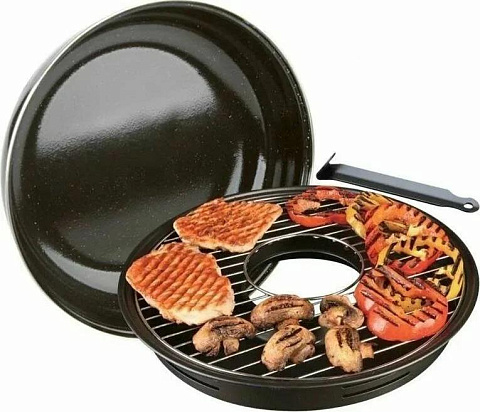 Сковорода гриль-газ является хорошей альтернативой мангала. Термическая обработка проходит по тому же принципу, что и при использовании мангала с углями. Продукты приготовленные на сковороде-гриль проходят термическую обработку по принципу той, которая происходит при приготовлении продуктов на традиционном барбекю с углями , мангале или в духовке. Принцип действия тот же, конвекция горячего воздуха под крышкой. Только в духовке конвекцию обеспечивает работа вентилятора, а в ГРИЛЬ-ГАЗ это происходит естественным путем за счет небольшого объема сковородки. При этом отсутствует прямой контакт продукта с нагреваемой поверхностью. Продукт готовится без добавления масла. Мясо, курица, рыба, овощи запекаются, сохраняя вкус, сочность и приобретая аромат блюда приготовленного на мангале.