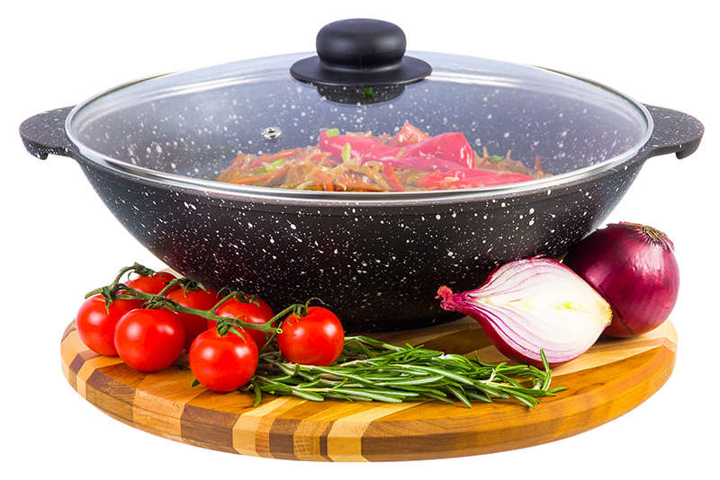 Сковорода-вок Elan Gallery "Чёрный мрамор" из серии "Гармония вкуса" объемом 3 литра с крышкой равномерно разогревается и распределяет тепло таким образом, что продукты в ней остаются сочными и сохраняют все свои полезные и вкусовые свойства. Диаметр крышки – 28 см, диаметр дна – 13 см, высота стенки внутри посуды – 7,7 см. Сковорода выполнена из толстостенного литого алюминия и имеет ультрапрочное двухслойное антипригарное покрытие Cookmark. Покрытие устойчиво к царапинам и износу, полностью безопасно для здоровья и не содержит PFOA или других вредных веществ. Вок идеально подойдёт для приготовления азиатских блюд из лапши, мяса, овощей или риса. Можно использовать вместо казана, сотейника или кастрюли для приготовления любой еды. Эксплуатация: не нагревать без продуктов. Дайте посуде остыть, прежде чем помещать ее в воду. Использовать только деревянные и силиконовые приборы. Не мыть абразивными или щелочными моющими средствами. Использовать в посудомоечной машине только в режиме "Эко" с применением средств, не содержащих щелочи. Подходит для всех типов плит, кроме индукционных. Можно использовать в духовом шкафу без крышки при температуре до 250 градусов. Сковорода станет идеальным подарком для женщин и придаст процессу приготовления пищи новый уровень комфорта. Подарите такую универсальную вещь маме, подруге, сестре или тёте. Хорошая сковородка – мечта любой хозяйки! В серии "Гармония вкуса" вы найдёте любой кухонный инвентарь для вашего дома: сковороды, кастрюли, блинницы, казаны и жаровни. Соберите набор посуды для вашей кухни в едином стиле! /
