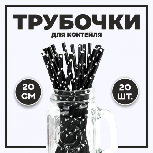 Трубочка для коктейля «Звёзды», набор 20 шт., цвет чёрный