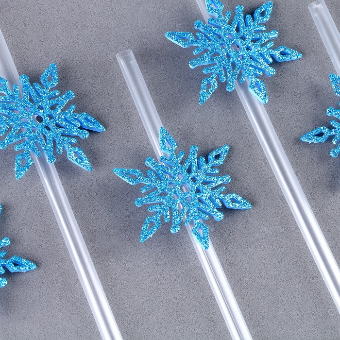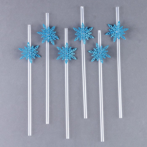 Трубочки для коктелей одноразовые «Снежинки», в наборе 6 шт., голубые