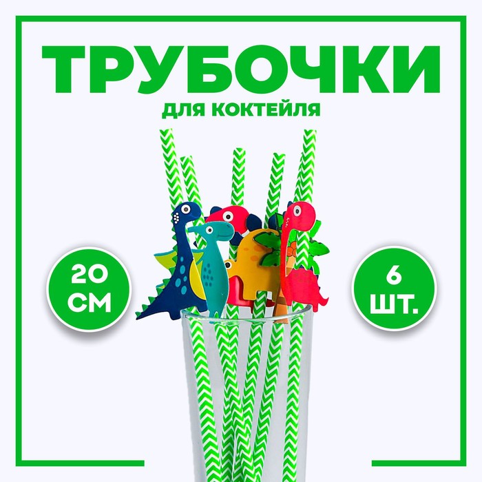 Трубочки для коктейля «Динозаврики», набор 6 шт.