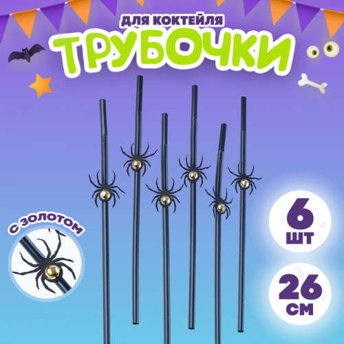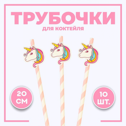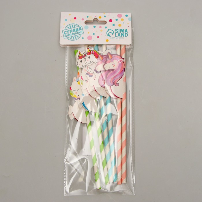 Трубочки для коктейля «Единорог», набор 6 шт., МИКС