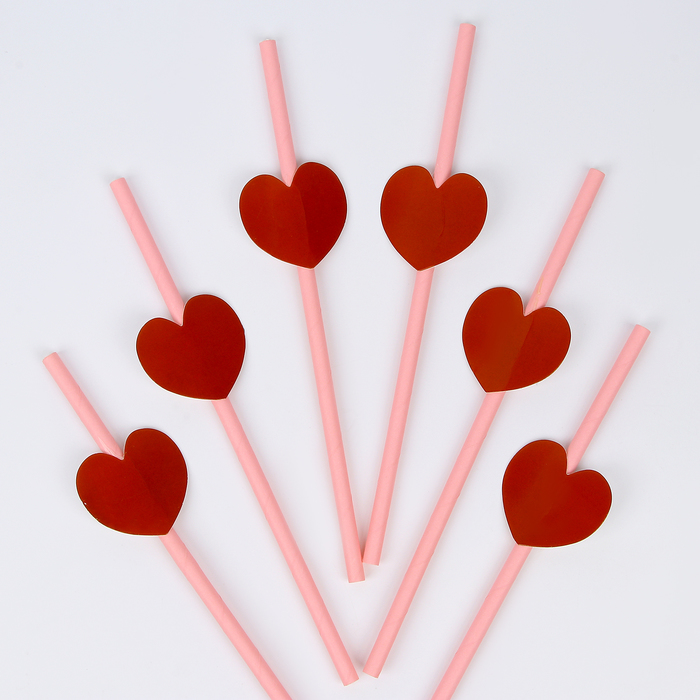 Трубочки для коктейля «Сердце», набор 6 шт.