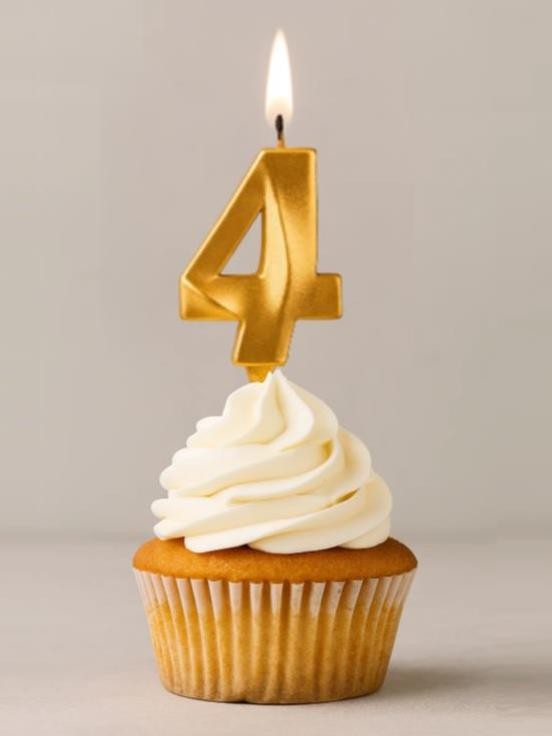 Свеча для торта "Грань" цифра 4 (золото mix), 8,7х4,3х1,2 см