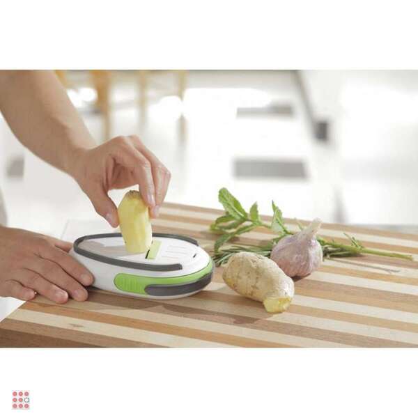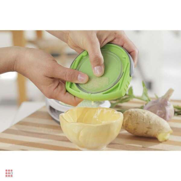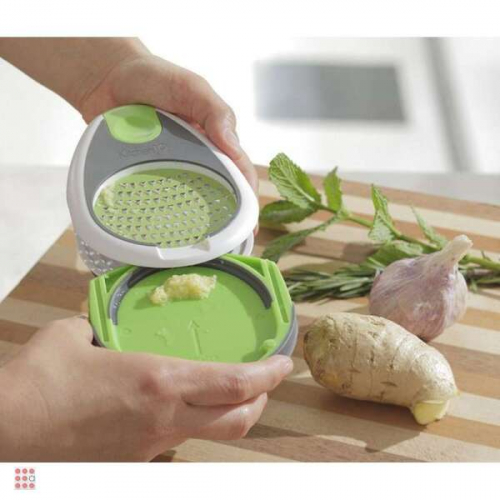 Многофункциональный компактный пиллер 4 в 1 может может очистить, натереть, нарезать и извлечь сок. Стальные зубья и лезвия без особых усилий справятся не только с чесноком, но и с корнем имбиря.