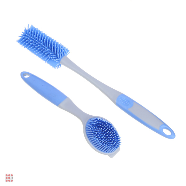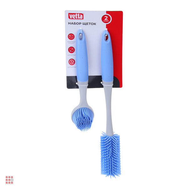 Набор из 2 щеток для мытья посуды VETTA займет достойное место на любой кухне. Полимерная щетина изделий не дает скапливаться грязи, не впитывает воду и быстро сохнет. Щетки отмоют посуду и не повредят даже самые хрупкие аксессуары. Прорезиненные ручки исключают скольжение щеток в мокрой руке.