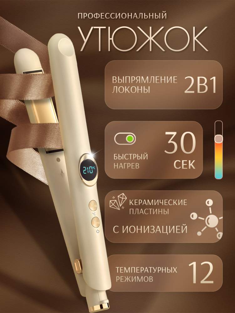 Выпрямитель для волос, 30Вт, цвет бежевый