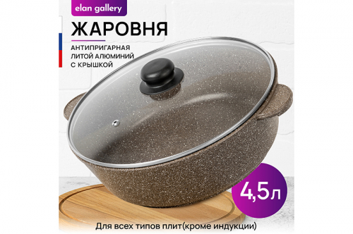Жаровня «Коричневый опал» из серии «Гармония вкуса» предназначена для приготовления горячих блюд. Размер изделия – 32,5х27х14,5 см, объём – 3,7 литра. Высота без крышки – 9 см, высота внутренней части – 8,4 см, диаметр дна – 20 см. Сотейник изготовлен из толстостенного алюминия и имеет ультрапрочное двухслойное антипригарное покрытие Cookmark. Оно устойчиво к износу и царапинам, не содержит PFOA и других вредных веществ, что делает его полностью безопасным для здоровья. Толстые стенки и плотно прилегающая крышка из жаропрочного стекла создают при нагреве эффект духовки. Пароотвод обеспечивает равномерную циркуляцию. Жар распределяется по изделию таким образом, что продукты надолго сохраняют свои сочность, аромат и полезные свойства. Красивая алюминиевая жаровня – мечта любой хозяйки. С её помощью вы легко приготовите вкусную пищу дома и на даче. Используйте глубокий сотейник для приготовления мясных, рыбных и овощных блюд. Это универсальная кухонная утварь, подходящая для варки, жарки и тушения. Приготовьте в ней плов, бульон или самые разнообразные угощения из мяса, рыбы и овощей. Правила эксплуатации: не нагревайте без продуктов. Прежде, чем поместить в воду, дайте изделию остыть. Пользуйтесь только деревянными и силиконовыми приборами. Не мойте абразивными или щелочными моющими средствами. Использование в посудомоечной машине допускается только в режиме «Эко» с применением средств, не содержащих щёлочь. Подходит для газовых, электрических и стеклокерамических плит. Не подходит для индукции. Без крышки подходит для запекания в духовом шкафу при температуре до 230 градусов. Такая посуда станет прекрасным подарком маме или бабушке. В серии «Гармония вкуса» вы найдёте сковороды, кастрюли, блинницы, казаны и жаровни. Соберите набор для вашей кухни в едином стиле и дополните свой инвентарь! /