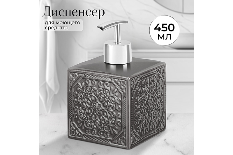 Настольный диспенсер от Elan Gallery подойдёт для хранения жидких моющих и очищающих средств. Размер изделия – 8,5х8,5х14 см, объём – 450 мл. Высота без дозатора – 10 см. Выполнен из керамики и имеет элегантный серый цвет. Поверхность изделия украшает благородный орнамент. Дозатор серебристого цвета выполнен из пластика. Он герметичен и надёжно предотвращает проливание. Благодаря красивому дизайну и необычной форме баночка найдёт место в любой части вашей квартиры. Заполните ёмкость жидким мылом или средством для посуды и расположите на кухонной раковине. В ванной используйте флакон под гель для душа или шампунь. Универсальную бутылочку можно приспособить под антисептик. Поставьте её на рабочий стол в своей комнате или кабинете, чтобы дезинфицирующее средство было под рукой. Не рекомендуется применять абразивные моющие средства. Не подходит для использования в посудомоечной машине. Для очистки изделия воспользуйтесь тёплой водой с добавлением моющего средства. Поставляется в дизайнерской картонной коробке – вам не потребуется дополнительная подарочная упаковка. Декоративный диспенсер от бренда Элан Галерея станет отличным подарком для родных и близких. Это не только практичный, но и эстетичный аксессуар для поддержания гигиены, подходящий под любой интерьер!