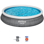 Бассейн надувной круглый Intex - прекрасная альтернатива сборным каркасным бассейнам. Изготавливаются такие бассейны с применением запатентованной технологии SUPER-TOUGH, которая обеспечивает надежность и долговечность бассейна.Стенки бассейна сделаны из трех отдельных слоев: два слоя плотного винила и один - внешний - полиэстр для особой прочности. Борта бассейна поддерживаются надувным кольцом, которое поднимается, по мере заполнения бассейна. Для установки бассейна требуется плоская, горизонтальная площадка.