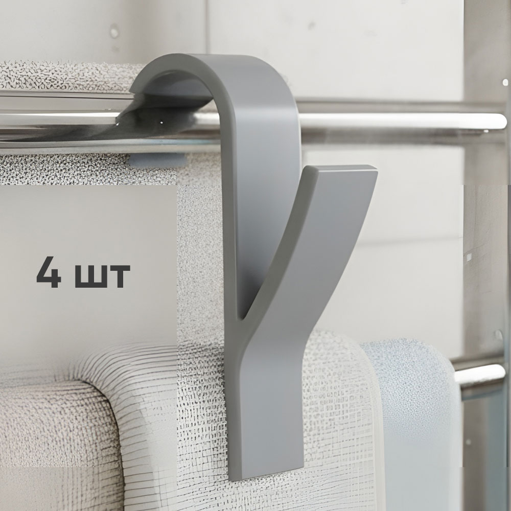 Набор крючков на полотенцесушитель 4шт 9,6*2,5*3см, серый