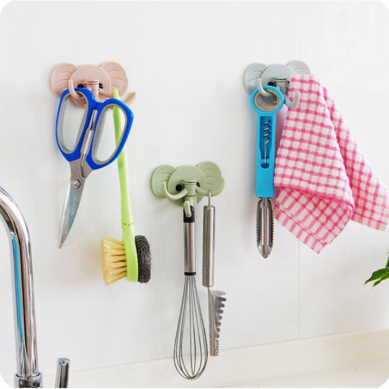 Декоративный настенный крючок для мелочей в виде головы слона с складными хоботом и бивнями.
