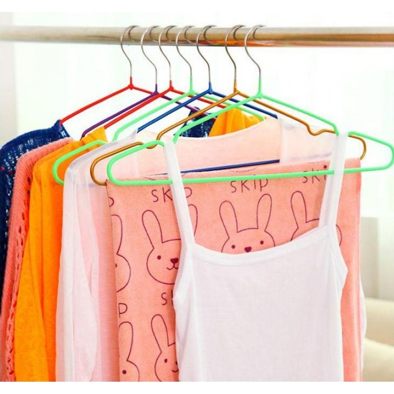 Металлические плечики предназначены для аккуратного хранения легкой одежды. Плечики с разноцветным силиконовым  покрытием компактные, имеют малый вес, занимают немного места на штанге. В платяном шкафу или гардеробной гарантирован порядок — вещи не спадают с вешалок и долго сохраняют свою форму. Такие плечики прекрасно подходят для сушки одежды после стирки, покрытие защищает металлическую поверхность от коррозии, а вещи — от заусениц, которые могут стать причиной повреждения деликатных тканей.