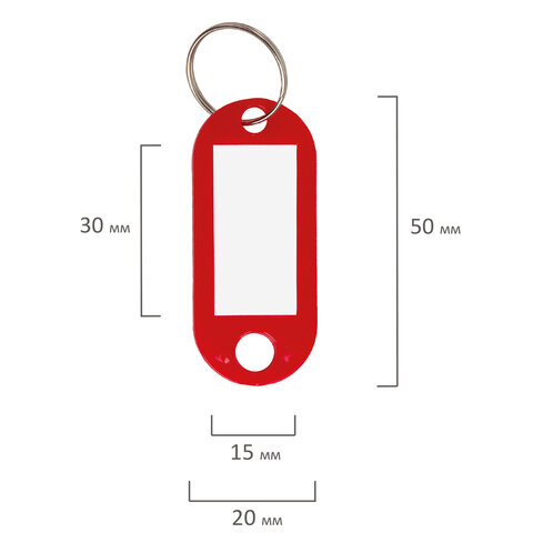 Бирки для ключей КОМПЛЕКТ 50 ШТ., длина 50 мм, инфо-окно 30х15 мм, КРАСНЫЕ, STAFF, 237490