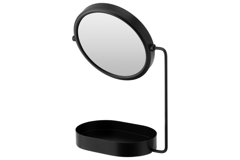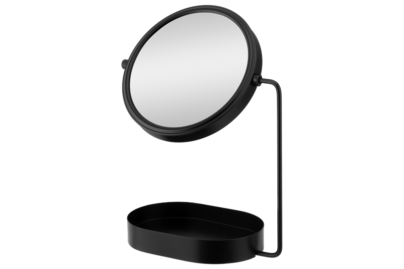 Двустороннее зеркало ELCASA чёрного цвета на подставке с контейнером имеет сторону со стандартным отражением и сторону с двукратным увеличением. Полный размер изделия – 19х10х26 см, размер контейнера – 15х10х2,5 см, диаметр зеркала – 15 см. Угол наклона регулируется. Декоративное круглое зеркало вращается на 360 градусов. Органайзер выполнен из металла. Настольное зеркало станет функциональным аксессуаром и стильным дополнением интерьера вашего дома. Компактное зеркальце можно разместить на туалетном столике, полке, тумбочке как в спальне, так и ванной комнате. Поставьте его рядом со всеми косметическими принадлежностями, чтобы все было под рукой. В контейнер на подставке можно складывать украшения и другие небольшие принадлежности. Для женщин косметическое зеркало станет удобным помощником при ежедневном туалете, нанесении макияжа или маски для лица. Мужчинам зеркало подойдет для бритья. Металлическое зеркало удобно использовать визажистам или гримёрам. Поставляется в стильной картонной упаковке. Крутящееся зеркало на ножке станет отличным подарком любой женщине или девочке: маме, сестре, лучшей подруге. Двустороннее зеркальце с контейнером сможет стать стильным декором интерьера вашего дома и поможет поддерживать красоту в течение дня!