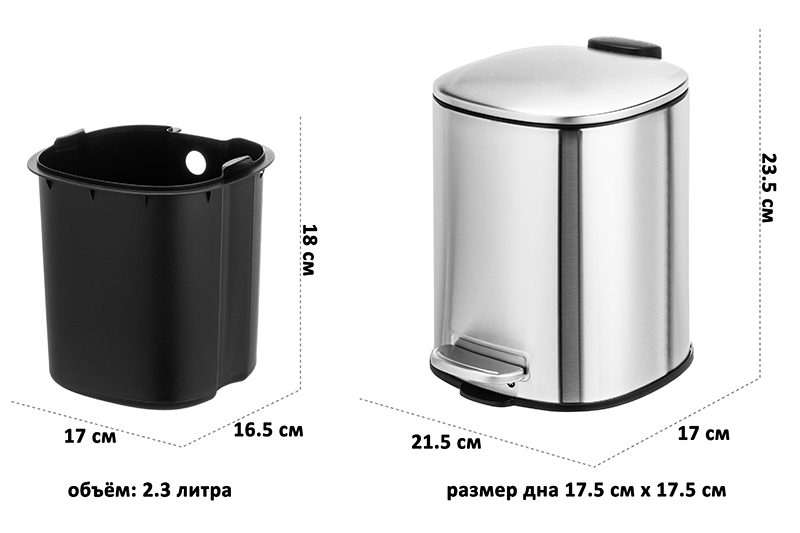 Контейнер для мусора с педалью от бренда ELCASA серебряного цвета предназначен для организации порядка в вашем доме, например, в комнате или на кухне. Урна оснащена крышкой. Крышка не пропустит запахов и не допустит выпадения мусора. Размер изделия – 21,5х17х23,5 см, объём – 3 литра. Высота с открытой крышкой 40 см. Внешняя ёмкость серебристого цвета выполнена из металла, имеет внутри чёрное пластиковое ведро размером 17х16,5х18 см и объёмом 2,3 литра. Крышечка открывается педальным механизмом. Педаль легко нажать – вам не потребуется прикладывать усилий. Компактная мусорка отлично послужит вам для уборки и наведения порядка – её легко взять с собой в нужную комнату. Подойдёт для уборки стола и полок, перебирания канцелярии и бумаг. Напольная мусорная корзинка найдёт своё место в любой части вашего дома. Поставьте её под рабочим столом или на кухне под раковиной, чтобы выбрасывать в неё кожуру, остатки еды или бумажные полотенца. Разместите мусорный бачок в туалете возле унитаза для утилизации гигиенических и косметических принадлежностей. Компактный мусорный бак станет прекрасным помощником для любителей рукоделия – можно держать под рукой и с удобством избавляться от излишков материала. Подойдёт для размещения возле мойки или офисного стола. За счёт компактного размера можно использовать как настольную мусорную корзину. Ведерко с универсальным дизайном будет стильным дополнением любого интерьера. Не рекомендуется применять абразивные моющие средства. Небольшая урна станет практичным дополнением вашего дома, офиса и дачи.