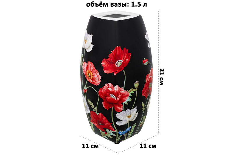 Ваза Elan Gallery «Маки на чёрном» размером 11х11х21 см и объёмом 1,5 литра подойдет для украшения интерьера, создания декоративных композиций и размещения цветов. Вазочка прямоугольной формы подходит для букетов с длинными стеблями. Выполнена из высококачественного фарфора new bone china. Это фарфор нового поколения, не уступающий по качеству традиционному костяному фарфору, но при этом гораздо более экологичный в производстве. Ваза украшена живописными изображениями маков и поможет создать праздничное настроение. Эта ваза предназначена для цветов и декоративных растений. Она идеально подойдет для сухоцветов, живых или искусственных цветов. Поставляется в подарочной упаковке. Ваза «Маки на чёрном» сможет стать настоящим украшением кухни или приятным подарком для ваших родных и близких!