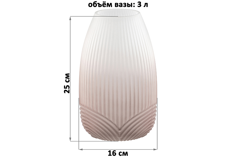 Ваза ручной выдувки от Elan Gallery объёмом 3 литра выполнена из стекла. Размер 16х16х25 см, внутренний диаметр горлышка 8 см. Матовая ваза с бело-коричневым градиентом украшена рельефным узором в виде полосок. Стильная вазочка с ребристой поверхностью послужит элементом декора для вашего дома! Основание вазы подчёркнуто рельефными дугами. Подойдёт для живых и искусственных цветов, веток и сухоцветов. В ней красиво будут смотреться букеты из любых цветов или веточек: роз, тюльпанов, вербы. Интерьерная ваза с рельефом украсит комнату даже без наполнения. Подойдёт для оформления декоративных композиций. Эргономичная форма позволит поставить в неё цветы с длинными стеблями. Разместите декоративную вазу на столе или полке, чтобы украсить спальню роскошным букетом гладиолусов или другими растениями! На Новый год и Рождество поставьте в стеклянную вазочку еловые ветки с ёлочными игрушками для создания праздничной атмосферы. Не рекомендуется применять абразивные моющие средства. Поставляется в картонной коробке. Сделайте сюрприз своим близким или коллегам на любой праздник! Предметы декора – хороший подарок как мужчине, так и женщине. Красивый дизайн и функциональность понравятся каждому! Рифлёная вазочка станет украшением домашнего интерьера и подчеркнёт красоту любого цветка. В коллекции бренда Elan Gallery можно найти много стильных товаров для дома. Здесь есть всё для создания уюта в квартире и на даче!