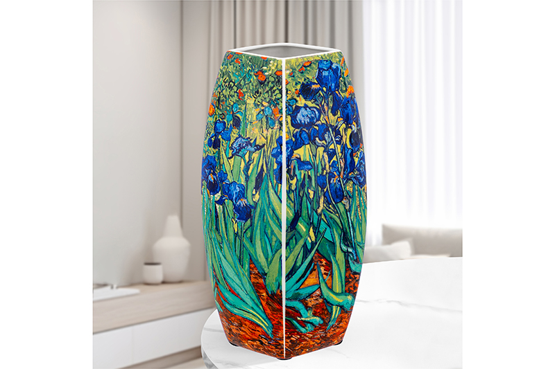 Настольная ваза Elan Gallery "Ирисы" размером 11,5х11,5х25 см и объёмом 2 литра прямоугольной формы выполнена из фарфора нового поколения new bone china. Благодаря современным технологиям этот вид не уступает традиционному костяному фарфору в прочности, но гораздо экологичнее в производстве. В коллекции бренда Elan Gallery можно найти много красивой посуды и предметов декора с изображениями по мотивам шедевров мировой живописи! Высокая вазочка украшена репродукцией картины известного художника Ван Гога. Яркий и узнаваемый сюжет на фарфоровом изделии удачно впишется в любой стиль интерьера, добавляя красоты и романтики. Интерьерная ваза подойдёт для размещения букетов, искусственных цветов или сухоцветов. Она послужит элементом декора вашего дома и поможет украсить его любыми растениями. Как красиво будут смотреться букеты из живых цветов и веточек на кухне и в любой комнате! Поставьте на видное место розы, тюльпаны или вербу для оформления интерьера в квартире. Интерьерная ваза украсит комнату даже без наполнения и подойдёт для создания декоративных композиций на журнальном столике или полке. Эргономичная форма позволит поставить в неё цветы с длинными стеблями. Не рекомендуется применять абразивные моющие средства. Поставляется в прочной красочной коробке. Станет шикарным подарком вашим близким на любой праздник. Благодаря стильной коробочке вам не понадобится дополнительная подарочная упаковка. Сделайте сюрприз ценителям искусства! Красивая фарфоровая ваза с рисунком станет украшением вашего дома и подчеркнёт красоту любого цветка. Ознакомьтесь с другими товарами для дома от Elan Gallery, здесь вы найдёте всё для создания домашнего уюта!