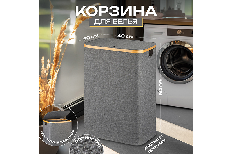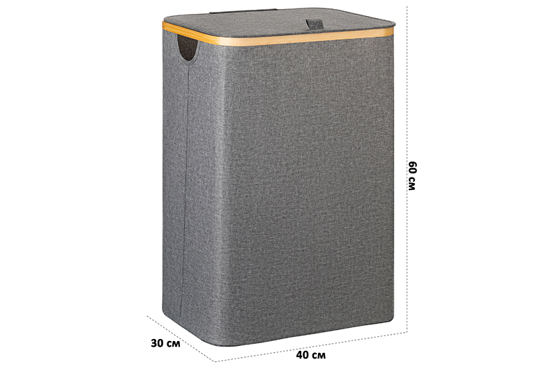 Прямоугольная корзина для белья 40х30х60 см с крышкой от бренда ELCASA – это функциональный органайзер для вашего дома! Её удобство заключается в том, что в сложенном виде она займёт совсем немного места в шкафу, а также при перевозке в сумке или багажнике автомобиля. Верхний каркас в форме прямоугольника изготовлен из натурального бамбука. Стенки, крышка и дно мешка серого цвета выполнены из полиэстера. Этот материал хорошо держит форму и не мнётся. Полиэстер быстро сохнет при попадании влаги на поверхность и легко отмывается от загрязнений. Внутри корзинки в уголках есть тканевые отсеки. Чтобы собрать хозяйственный короб, вставьте в них палочки, которые служат каркасом. Сверху закройте отсеки липучками. Складной контейнер подходит для удобного хранения грязной или постиранной чистой одежды. Благодаря вместительной ёмкости в коробку из ткани можно сложить постельное бельё и полотенца. Крышка надёжно скрывает наполнение, что позволяет эстетично хранить бельё в вашей ванной долгое время. Поставьте большую корзину возле стиральной машинки, чтобы во время уборки всё было под рукой. Копите одежду для стирки, не беспокоясь испортить эстетику домашнего интерьера. В детской комнате большой полиэстеровый бак можно использовать как вместительный ящик для мягких игрушек и любых других вещей. Можно собрать целый набор бельевых корзин и использовать их для сортировки одежды разных цветов. В коллекции бренда ELCASA представлено много стильных товаров для дома, например, мебель из экологичных материалов. Выберите варианты на свой вкус!