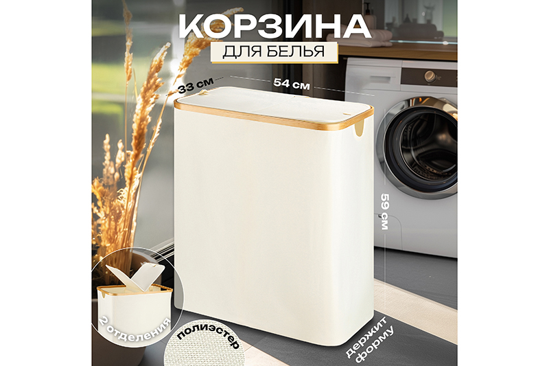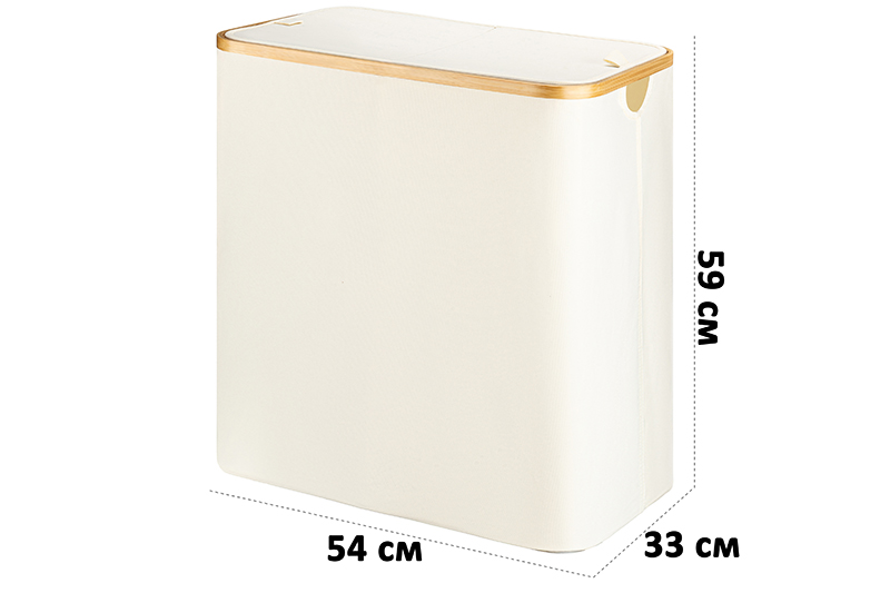 Прямоугольная корзина для белья 54х33х59 см с 2 внутренними отделениями от бренда ELCASA – это функциональный органайзер для вашего дома! Её удобство заключается в том, что в сложенном виде она займёт совсем немного места в шкафу, а также при перевозке в сумке или багажнике автомобиля. Каждый отсек имеет отдельную крышку. Всего у корзинки с внутренним разделителем 2 крышечки. Верхний каркас в форме прямоугольника изготовлен из натурального бамбука. Стенки, крышка и дно мешка молочного цвета выполнены из полиэстера. Этот материал хорошо держит форму и не мнётся. Полиэстер быстро сохнет при попадании влаги на поверхность и легко отмывается от загрязнений. Внутри корзинки в уголках есть тканевые отсеки. Чтобы собрать хозяйственный короб, вставьте в них палочки, которые служат каркасом. Сверху закройте отсеки липучками. Складной контейнер с разделением подходит для удобного хранения грязной или постиранной чистой одежды. Благодаря вместительной ёмкости в коробку из ткани можно сложить постельное бельё и полотенца. Крышки надёжно скрывают наполнение, что позволяет эстетично хранить бельё в вашей ванной долгое время. Поставьте большую корзину возле стиральной машинки, чтобы во время уборки всё было под рукой. Копите одежду для стирки, не беспокоясь испортить эстетику домашнего интерьера. В детской комнате большой полиэстеровый бак можно использовать как вместительный ящик для мягких игрушек и любых других вещей. Благодаря тканевой стенке внутри бельевую корзину удобно использовать для сортировки одежды разных цветов. В коллекции бренда ELCASA представлено много стильных товаров для дома, например, мебель из экологичных материалов. Выберите варианты на свой вкус!