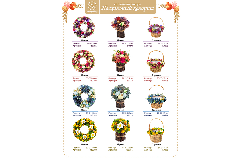 Венок «Тиффани» от Elan Gallery станет изящным дополнением вашего интерьера. Размер изделия – 34х34х8,5 см. Представляет собой композицию из сухоцветов, декоративных цветочков и искусственных веточек. Выполнен в оттенках синего, жёлтого и зелёного. Посреди цветов расположились искусственные перепелиные яички, украшенные золотистыми элементами. Не имеет петельки для подвешивания. Светлая Пасха – один из главных праздников весны! Мы разработали коллекцию сезонных товаров для дома, которые помогут создать радостную и уютную атмосферу в квартире или на даче. Пасхальный декор преобразит домашний интерьер и поможет встретить праздник в кругу любимых. Поставьте его на стол, полку или подоконник, оперев о стенку или окно. Повесьте на дверь, шкаф или свободный крючок, чтобы изделие всегда было на виду и радовало глаз. Сделайте частью праздничного стола, чтобы привнести ощущение чуда. Задействуйте в тематическом оформлении с фигурками, статуэтками и венками. Посадите в его центр пасхальных зверьков: зайчиков, курочек и цыплят. Необычный элемент декора найдёт место в любой части вашей квартиры: в прихожей, гостиной, столовой и спальне. Это изящный и лёгкий способ добавить эстетики любому помещению. В коллекции бренда Элан Галерея вы найдёте множество как ярких, так и нежных декоративных украшений – каждый обязательно подберёт сувенир на свой вкус. Они станут чудесным подарком для родных, близких и коллег. Наполните пространство вокруг себя радостью и весенним настроением!