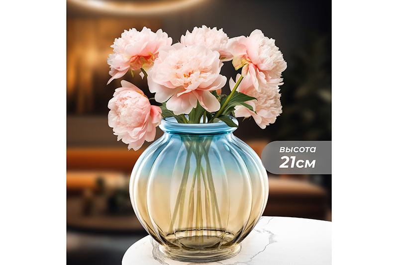 Круглая ваза ручной выдувки размером 21х21х21,5 см и объёмом 5 литров выполнена из прочного бежево-голубого стекла. Вазочка подойдёт для размещения живых и искусственных цветов, сухоцветов и веточек. Её широкое горлышко вместит даже пышный букет или цветочную композицию. Полупрозрачная ваза имеет бежево-голубой цвет и украшена крупным рельефом, напоминающим апельсиновые дольки. Она идеально дополнит интерьер вашей квартиры и украсит любую комнату. Утолщённое дно обеспечивает устойчивость вазы. Её можно разместить в гостиной, на кухне или в прихожей. Декоративная ваза поможет создать в доме праздничную атмосферу. Не рекомендуется применять абразивные моющие средства. Поставляется в прочной картонной коробке. Такая ваза станет идеальным подарком для любой женщины!