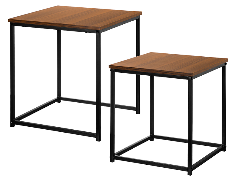 Набор 2 журнальных столиков от бренда ELCASA размерами 37,5х37,5х40 см и 33,5х33,5х36 см отлично впишется в любой интерьер, от скандинавского до лофт. Толщина каждой столешницы 1,3 см, выполнена из МДФ. Коричневая поверхность квадратной формы украшена рисунком, имитирующим дерево. Чайный столик с поверхностью из МДФ выглядит также стильно, как и деревянный, но обладает гладкой поверхностью, которая легко отмывается от загрязнений. Чёрный каркас декоративной мебели выполнен из металла, что обеспечивает устойчивость. Толщина металлического каркаса 1,5 см, максимальная нагрузка на один столик 5 кг. Прямоугольный стол можно использовать как прикроватный для подачи завтрака в кровать, а также придиванный для проведения уютных вечеров перед телевизором с бокалом вина. Используйте как кофейный, интерьерный или в роли тумбы, чтобы создать дополнительное место для хранения книг, украшения интерьера предметами декора и горшками с растениями. Низкие приставные столы легко переносить из комнаты на балкон, чтобы насладиться ароматным кофе или крепким чаем за чтением журнала. Комплект можно использовать как одну композицию в гостиной, либо расставить как сервировочные столики в разных помещениях. Благодаря универсальному дизайну подойдут для кухни, спальни, а также прихожей или коридора. Станут удобными офисными тумбочками для рабочего кабинета, а также косметическими или туалетными столиками для женщин. Можно украсить большой вазой с цветами, что добавит уюта интерьеру вашего дома или офиса. Используйте многофункциональный стол для сервировки сэндвичей на террасе загородного дома или даче. Не рекомендуется применять абразивные моющие средства. Поставляются в фирменной картонной упаковке. Стильная мебель подойдет в подарок как мужчинам, так и женщинам. В коллекции бренда ELCASA представлено много функциональных товаров для дома, выберите вариант на свой вкус.