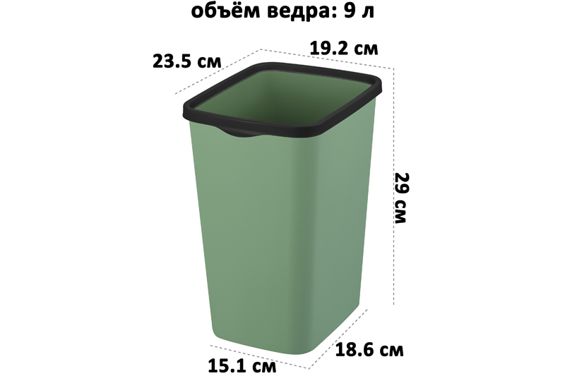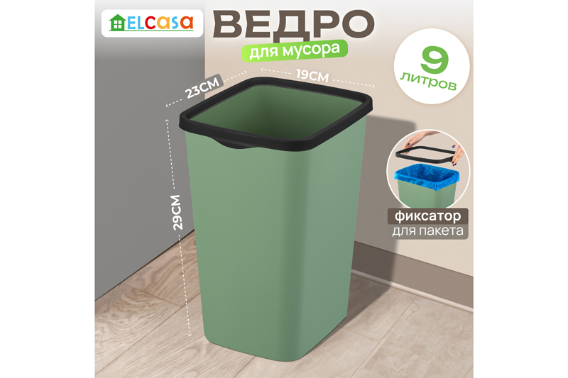 Зелёное ведро для мусора с чёрным фиксатором от бренда ELCASA размером 23,5х19,2х29 см и объёмом 9 литров поможет поддерживать чистоту в вашем доме, офисе или на улице. Размер дна 18,6x15,1 см. Мусорный контейнер выполнен из полипропилена. Этот вид пластика считается наиболее безопасным, так как не содержит бисфенол А и не выделяет вредных веществ. Мусорное ведро прямоугольной формы можно разместить в ванной комнате, туалете или на кухне. Удобный держатель в виде ободка помогает зафиксировать мусорный пакет и не даёт ему сползать. Поставьте урну из пластика на пол возле раковины, стола или в хозяйственный шкаф. Высокое пластиковое ведёрко можно использовать как офисное – под ненужные бумаги. Большая ёмкость обеспечивает достаточное пространство для хранения мусора любого вида. Можно приспособить на даче как уличную мусорку. Пластиковые мусорные вёдра выполнены в универсальном дизайне и хорошо сочетаются друг с другом. Можно использовать несколько баков из пластика от бренда ELCASA для организации раздельной системы сбора мусора. Корзина с фиксатором станет незаменимым помощником для поддержания чистоты как в доме, так и на улице и поможет организовать порядок в любом пространстве.