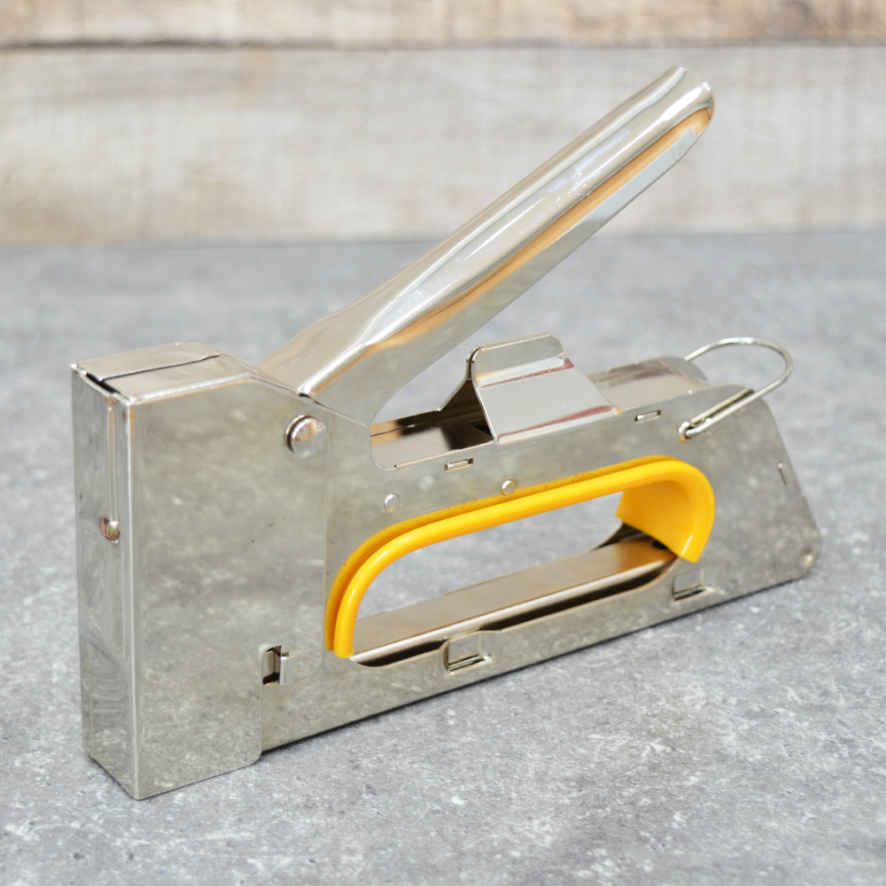 Степлер строительный, металлПредназначен для скрепления с деревянным основанием фанеры, картона, ДСП, ДВП, оргалита, пленки, утеплителя и других листовых материалов. Его используют для обивки мягкой мебели, сборки шкафов, монтажа низковольтных проводов, выполнения багетных и других крепежных работ.Заключаем договора по 44 ФЗ, 223 ФЗ