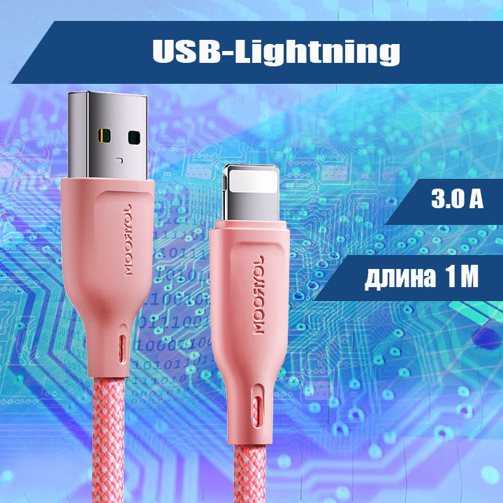 Кабель зарядки USB-Lightning. Длина 1м, мощность 30w. Цвет розовый. Поставляется в коробке.