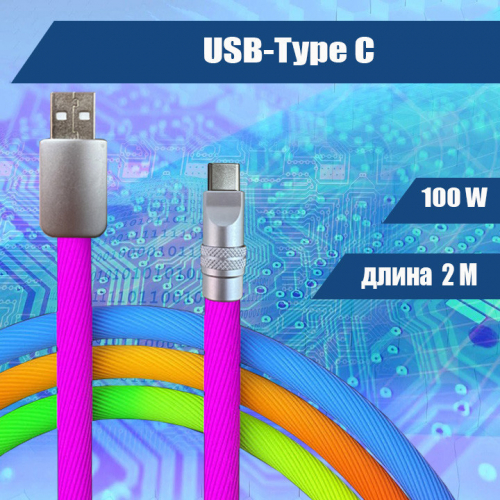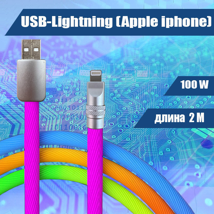 Кабель зарядки USB-Lightning. Длина 2 метра. Цвет радужный, 120w
