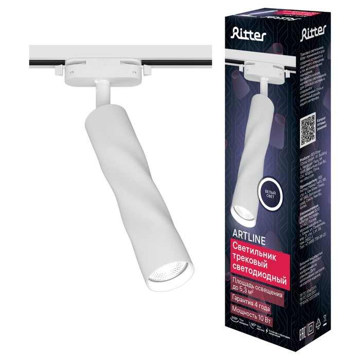 Светильник светодиодный трековый Ritter ARTLINE, поворотный, 55×200 мм, 10 Вт, 800 Лм, 4000К, 230 В, 5.3 м², белый