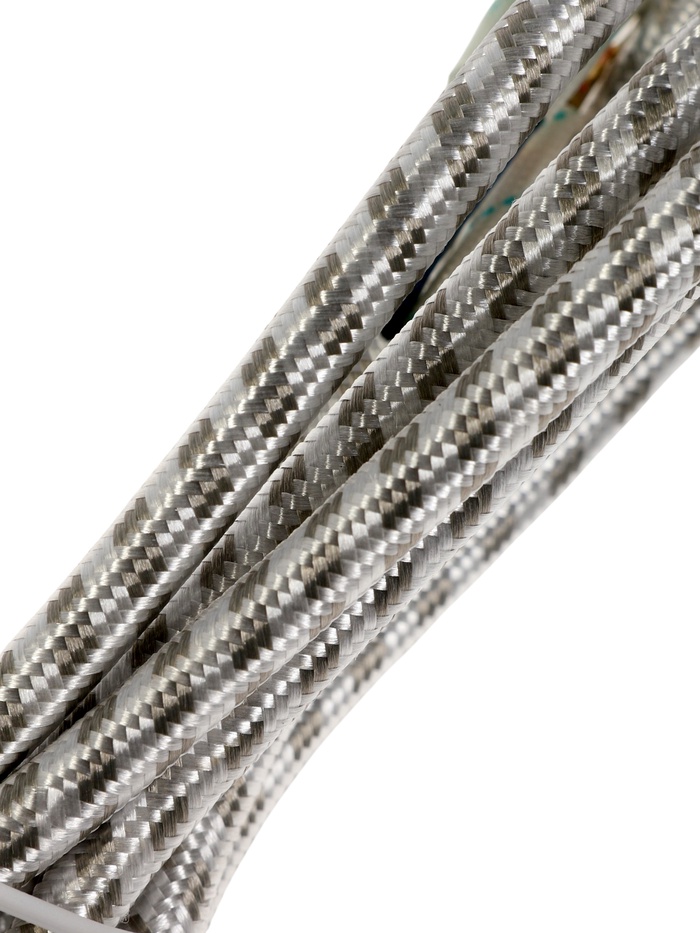 * Долговечность и защита: Плотная тканевая оплетка предохраняет провод от перегибов и механических повреждений, продлевая срок службы.