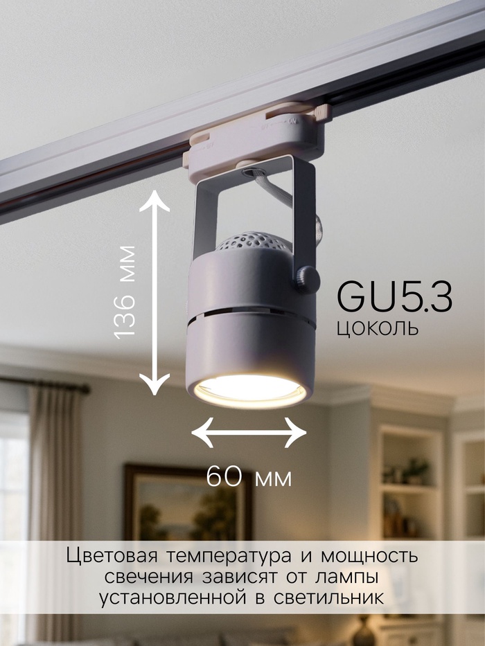 Светильник оснащен зажимным креплением, что позволяет легко и быстро установить его на однофазную шину без дополнительных инструментов. Вы можете выбрать лампу с нужной яркостью и установить её в цоколь GU5.3, что позволяет настроить освещение под свои нужды.