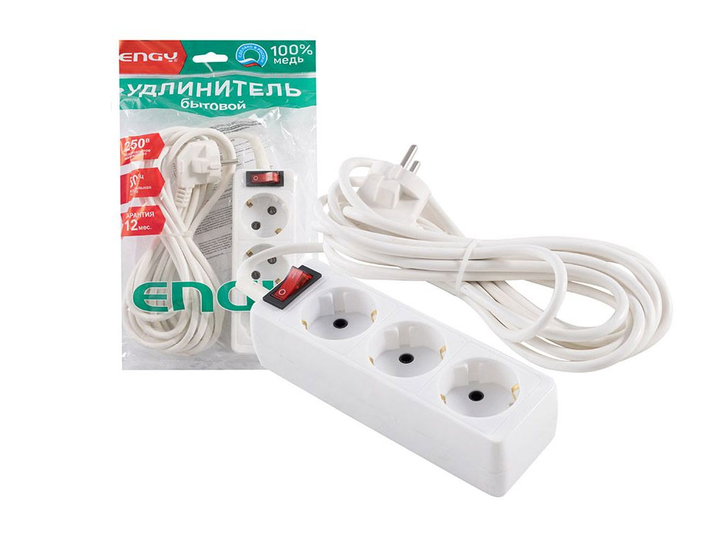 Удлинитель с выключателем 5м 3 розетки с/з ENGY Гранд ПВС 3*0,75