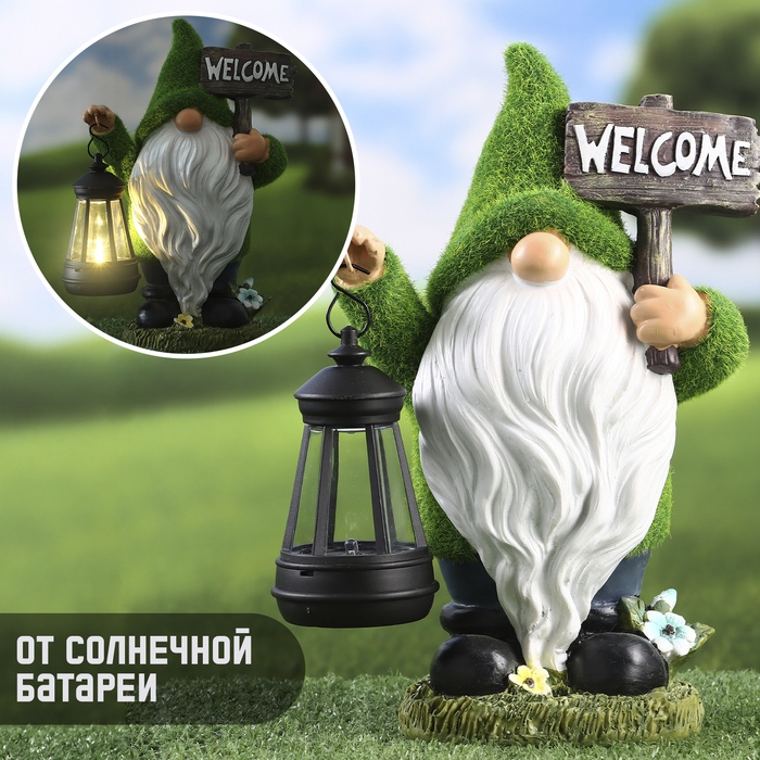 Садовая фигура - фонарь «Гном» 9×15×25 см, Greengo