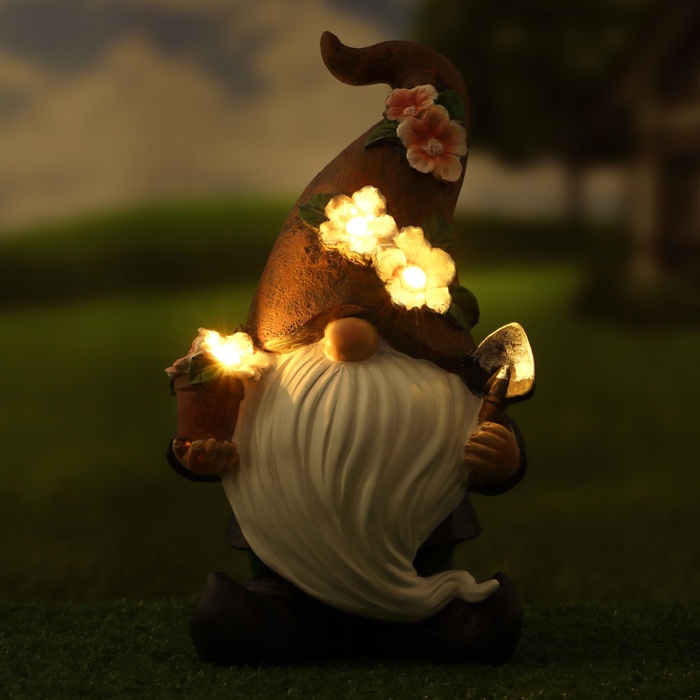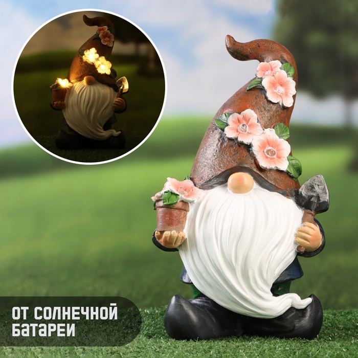 Садовая фигура - фонарь из полистоуна «Гном садовод», 27×16×13 см, Greengo