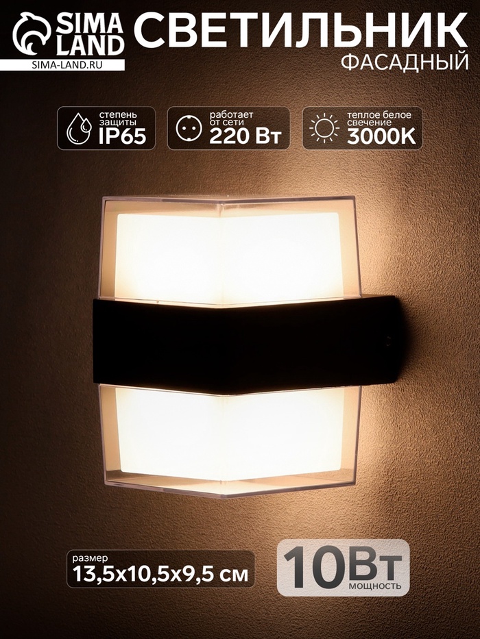 * Энергоэффективность: мощность 10 Вт обеспечивает яркое освещение при минимальном потреблении энергии, что делает светильник экономичным решением.