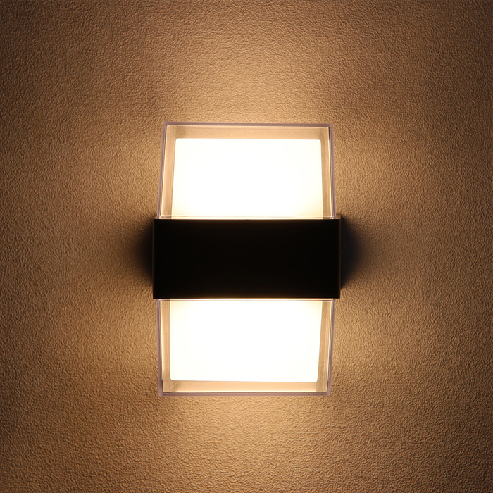 Светильник излучает тёплый белый свет с цветовой температурой 3000К, создавая мягкое и приятное освещение, которое идеально подходит для использования в коридорах, на лестницах или у входных дверей. Его металлический корпус чёрного цвета добавляет интерьеру современности и элегантности.